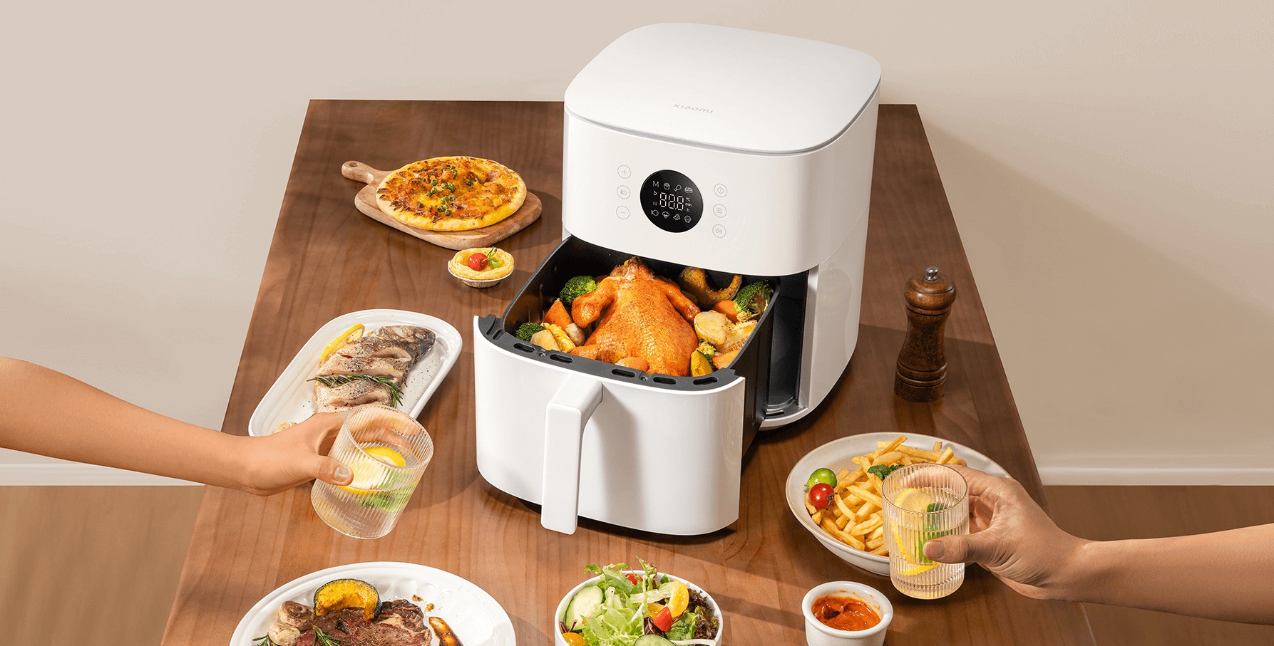 Xiaomi Smart Air Fryer BHR083NEU выполнена в современном и лаконичном корпусе, который легко вписывается в интерьер кухни. При габаритах 39 × 29 × 32 см аэрофритюрница остаётся достаточно компактной для своего класса, а вес 4,3 кг обеспечивает устойчивость на рабочей поверхности. Сенсорная панель и встроенный дисплей делают управление наглядным и аккуратным.