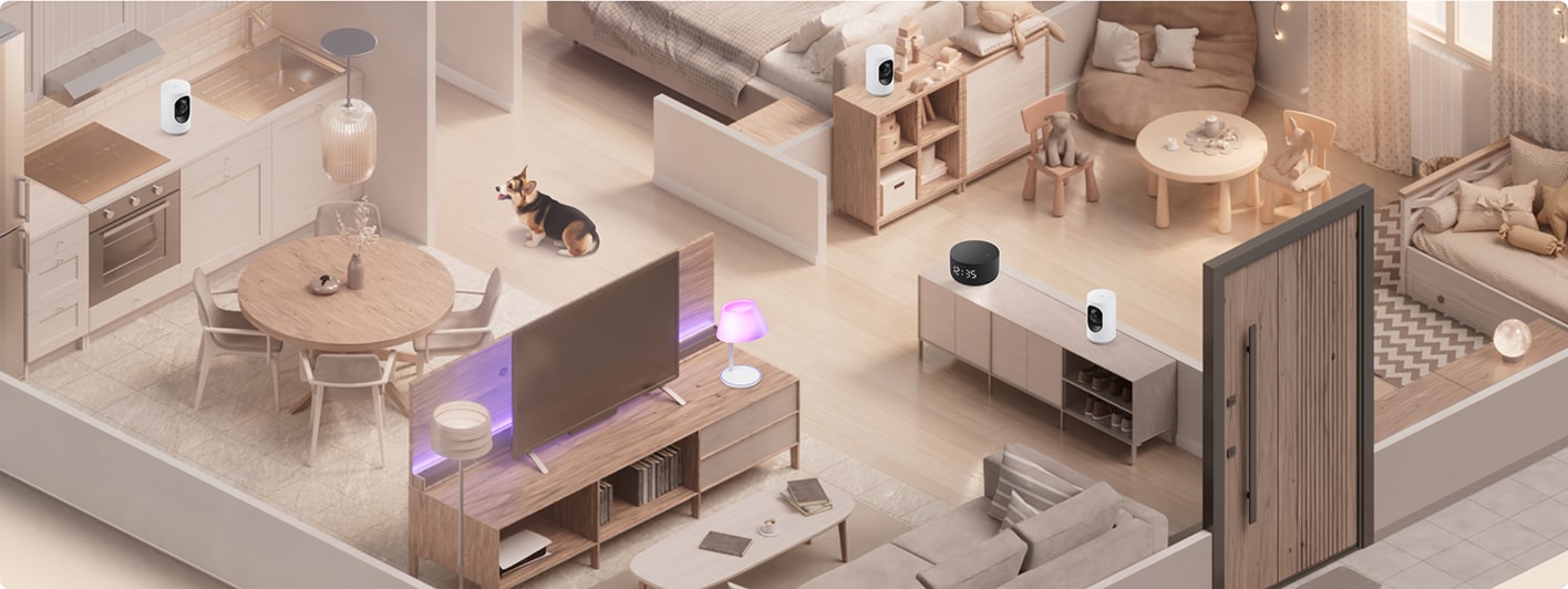 Благодаря встроенной ИК-подсветке камера способна видеть в темноте, а угол обзора по горизонтали 95° охватывает значительное пространство комнаты. Угол по вертикали составляет 54°, обеспечивая оптимальный обзор пространства.