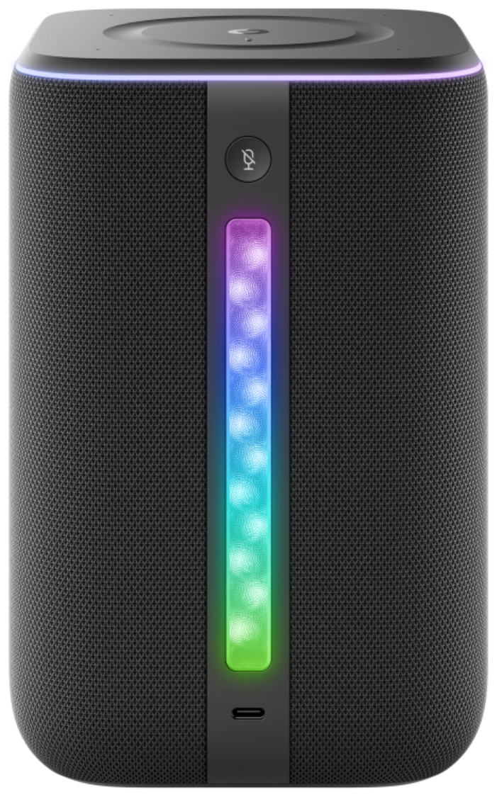 Для питания используется адаптер (через USB-C/PD), а встроенная подсветка и дисплей добавляют визуальную атмосферу: свет и информация отображаются прямо на корпусе, что повышает комфорт в домашней обстановке. Сенсорная панель помогает управлять колонкой вручную, если голос недоступен. Устройство рассчитано на питание от сети — автономный аккумулятор не предусмотрен.